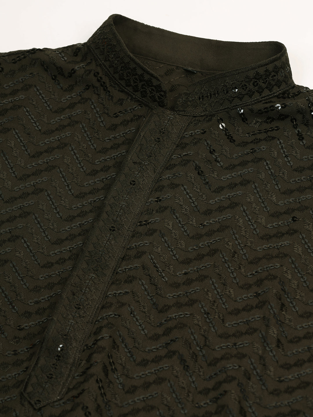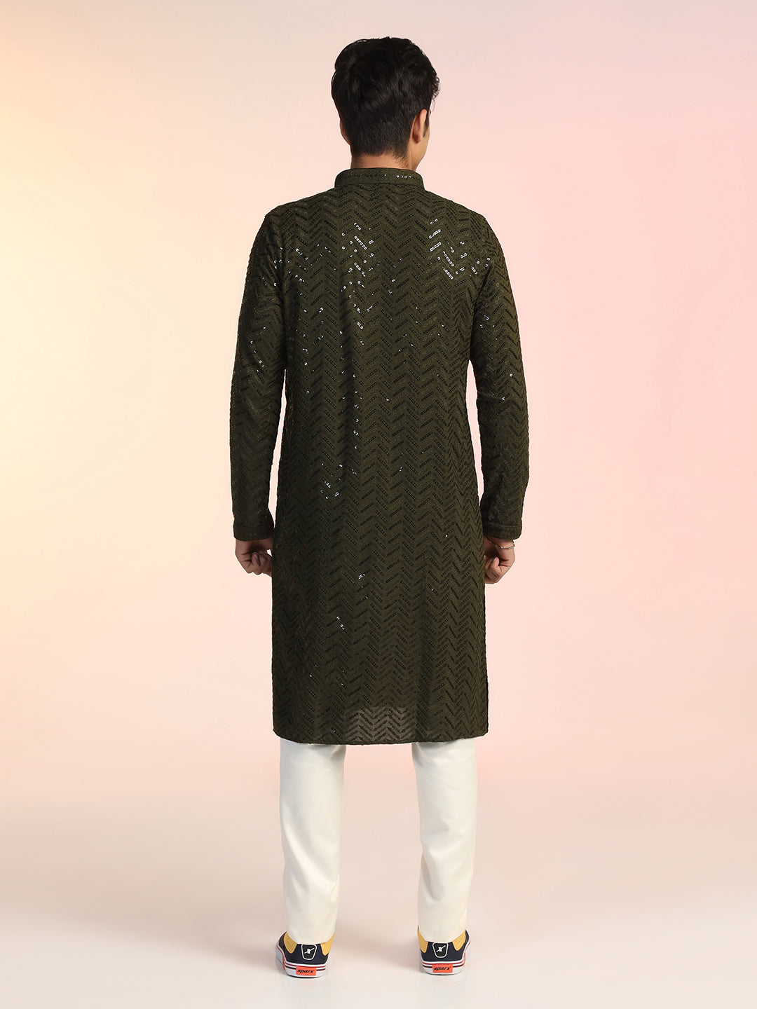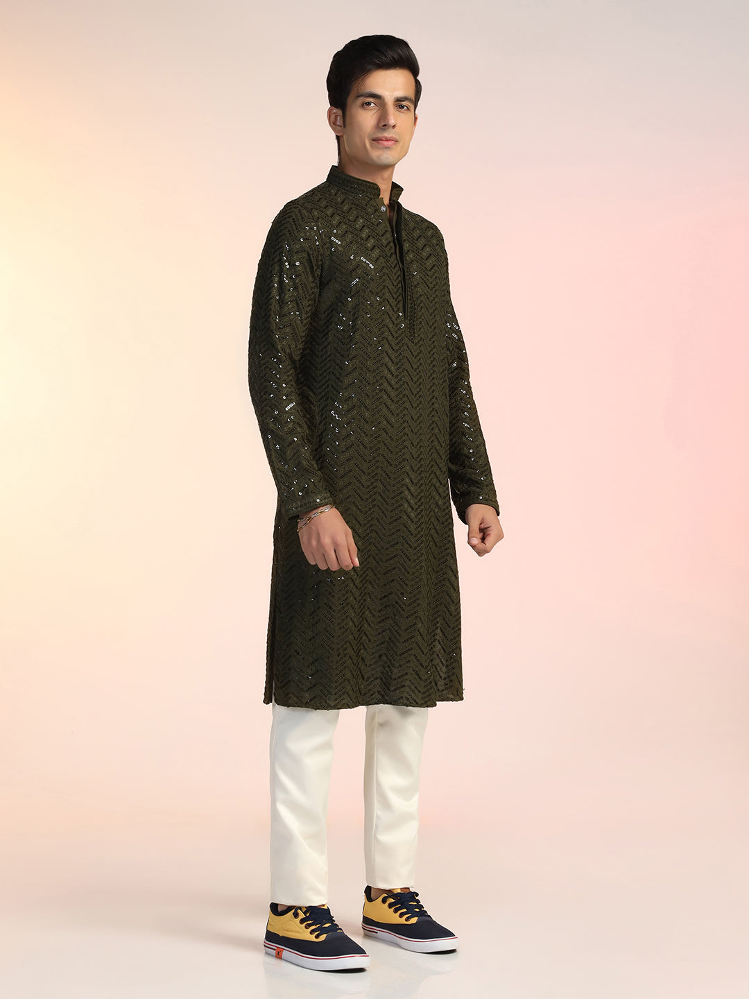 Olive Green Heavy Sequin Work Kurta For Men