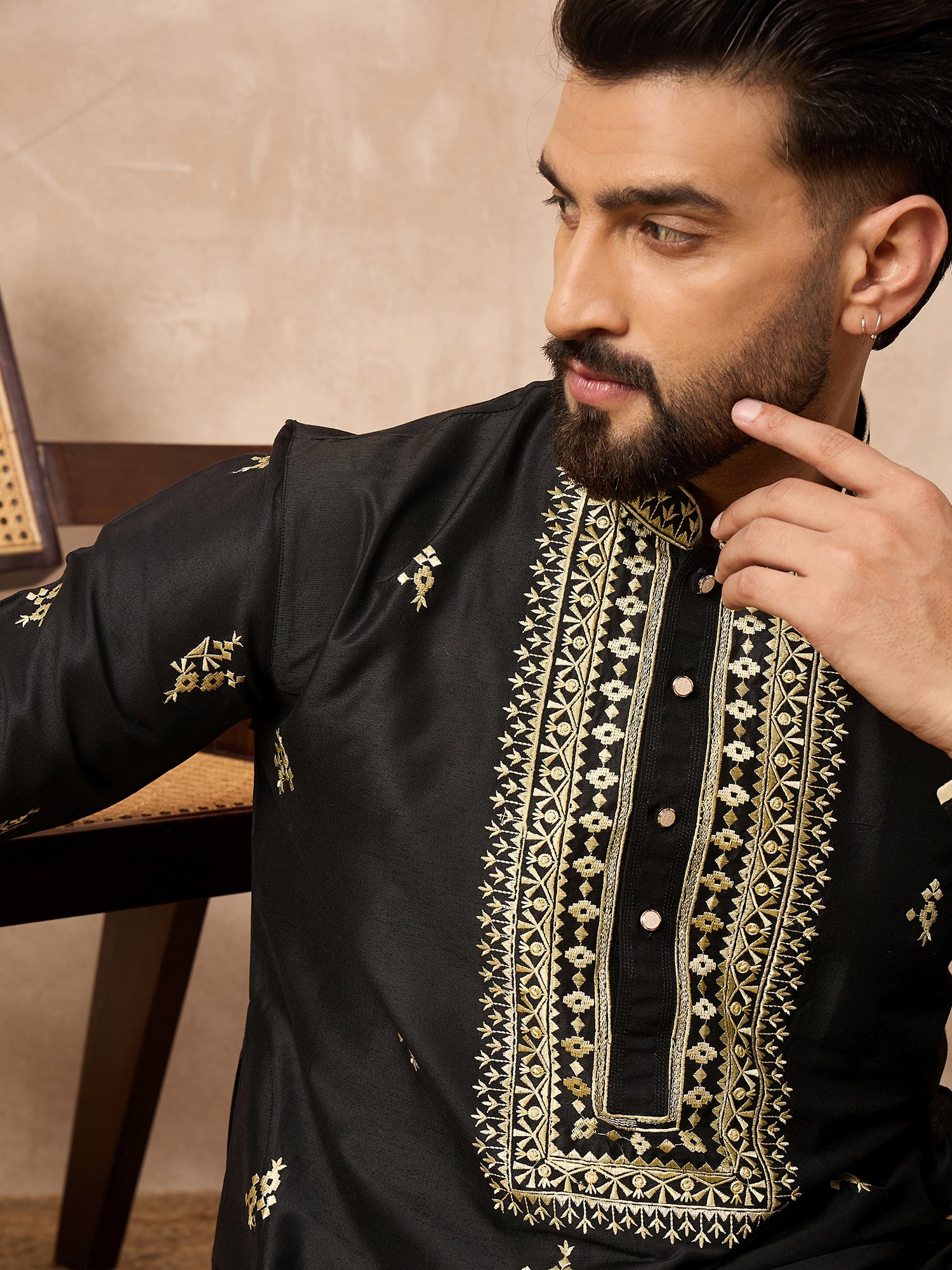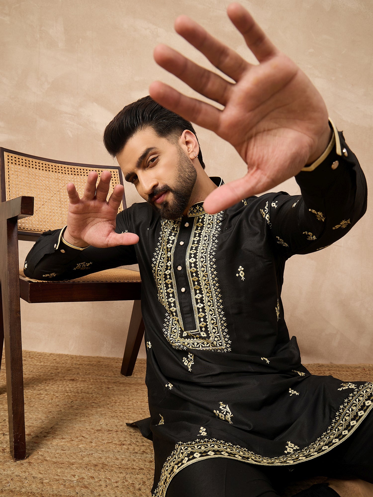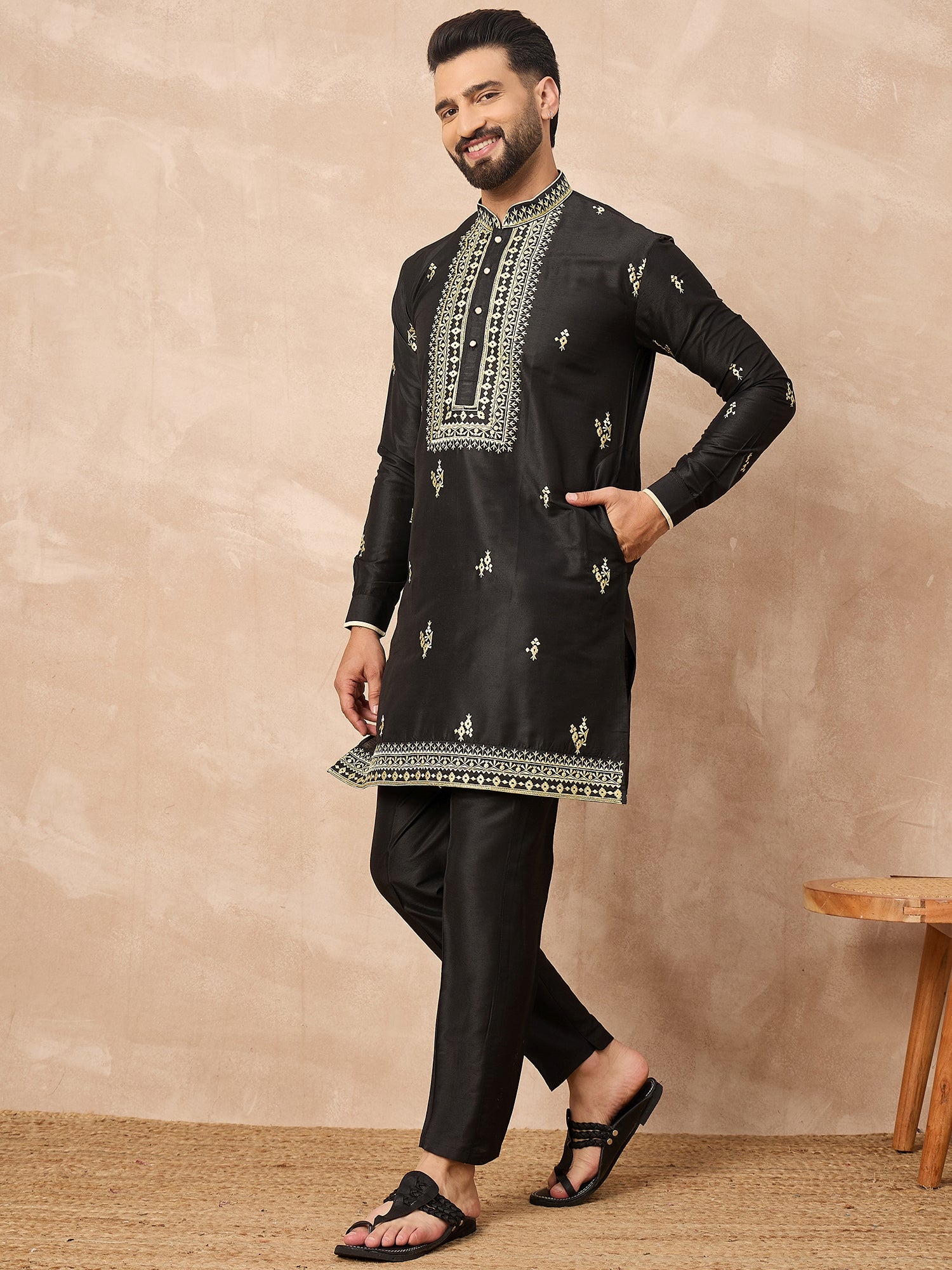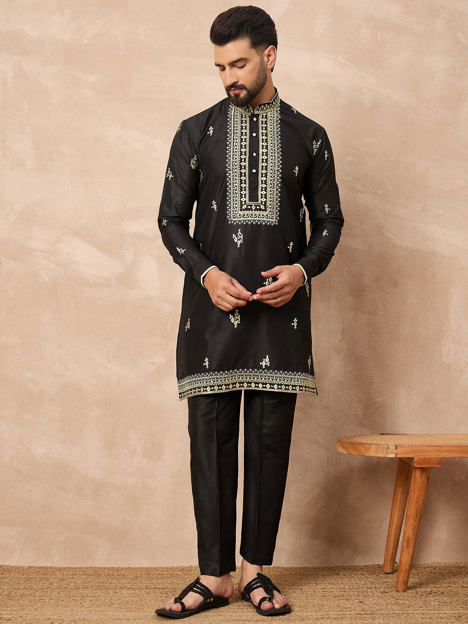 Prakatha Premium Black Embroidered Kurta Trouser Set for Men