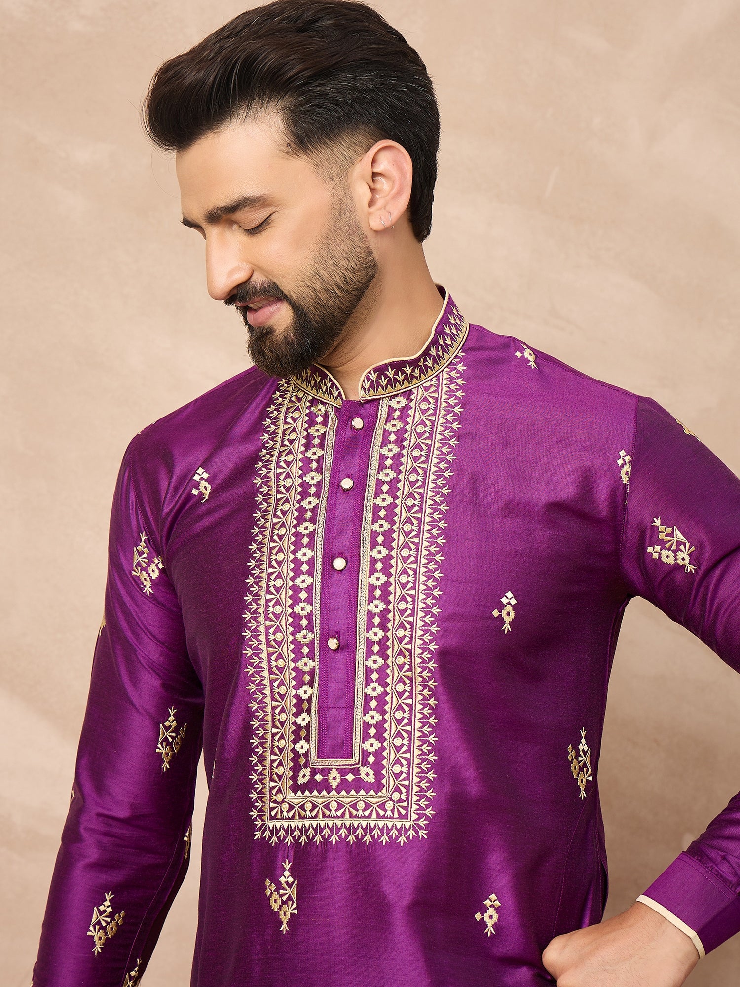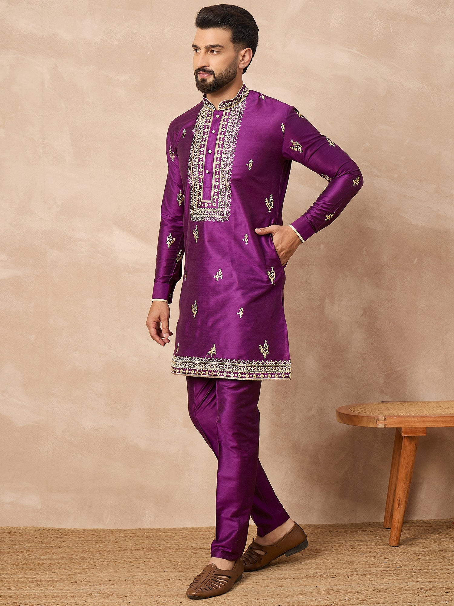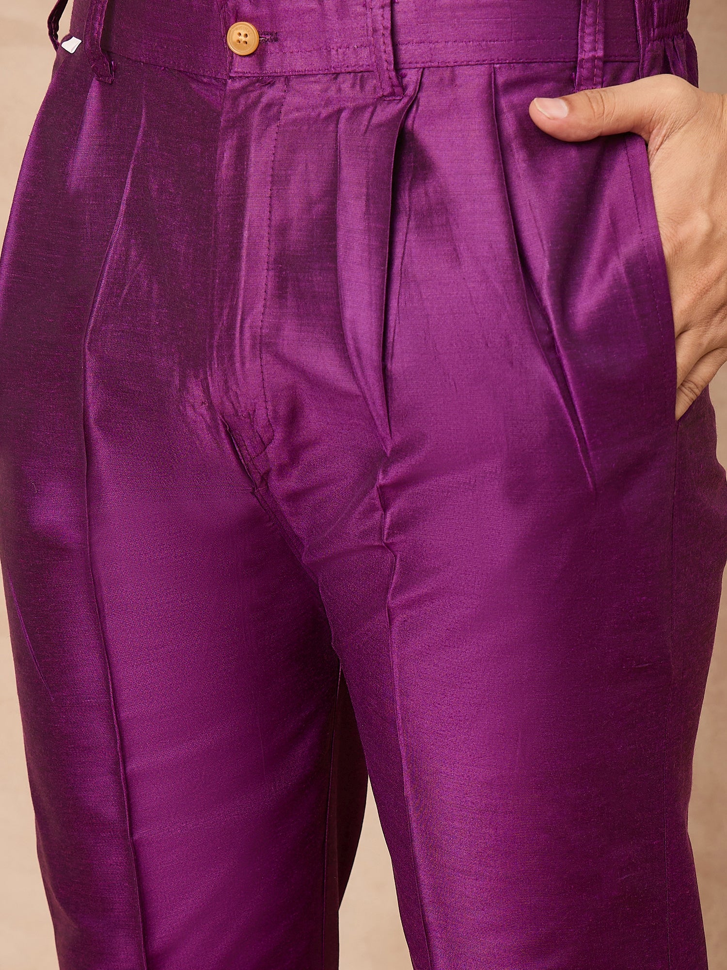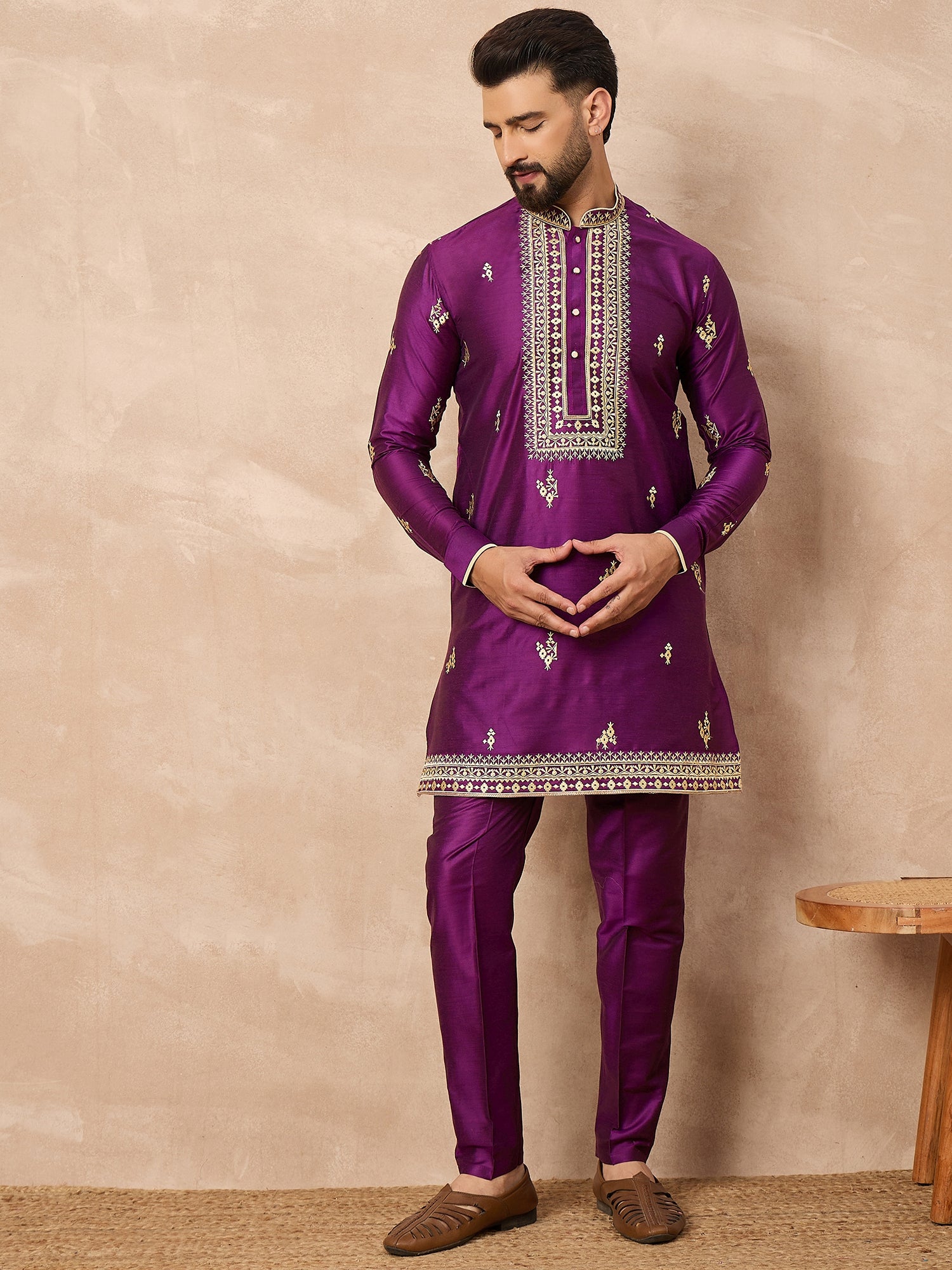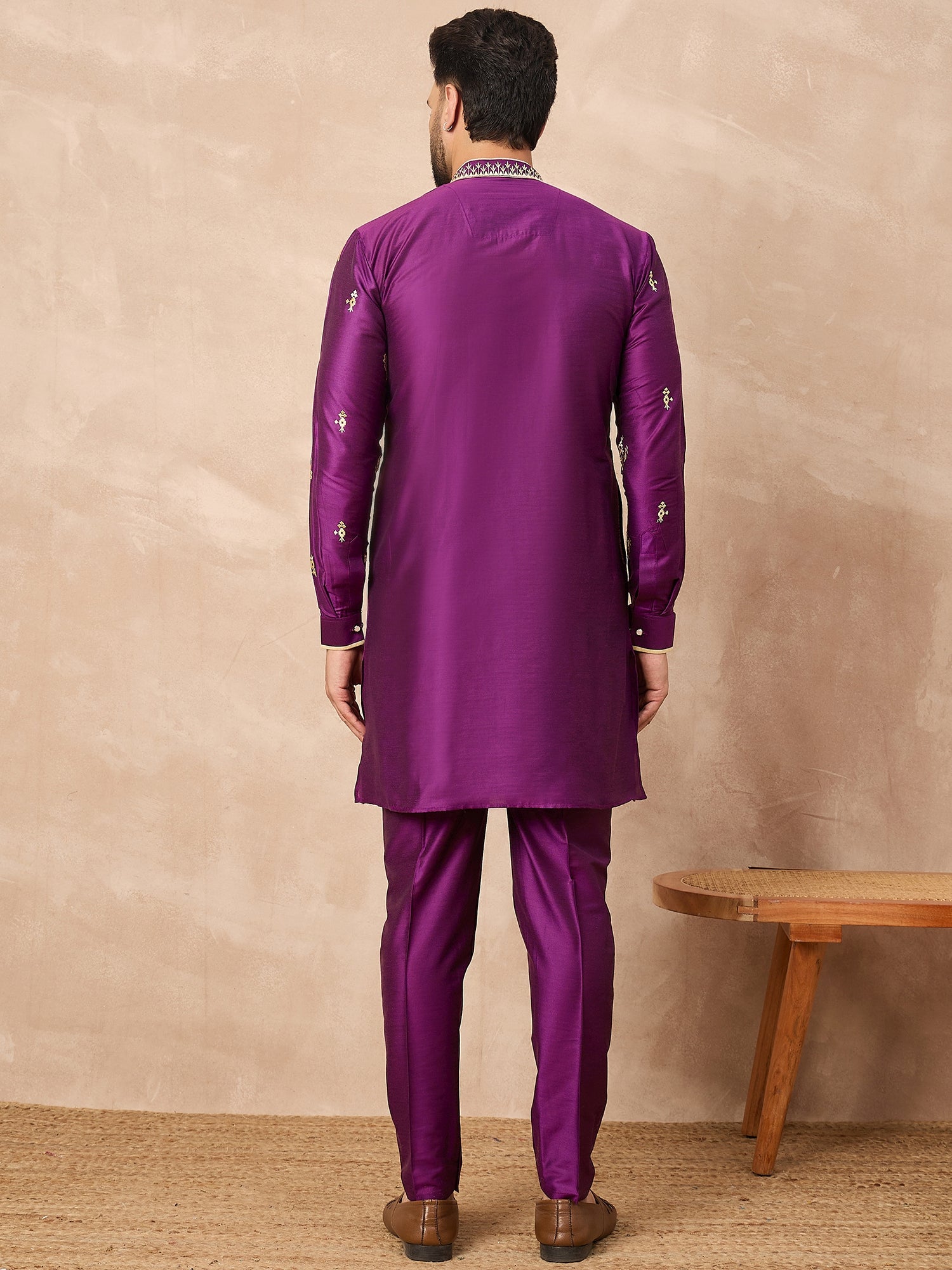 Prakatha Premium Purple Embroidered Kurta Trouser Set for Men