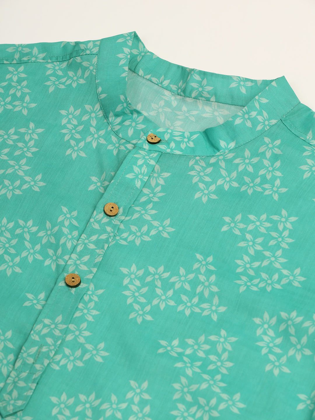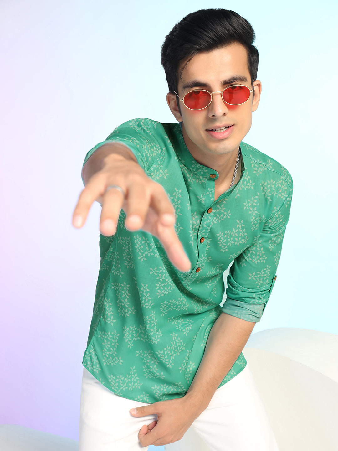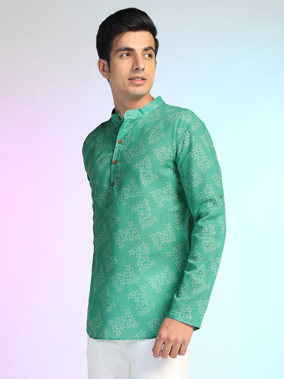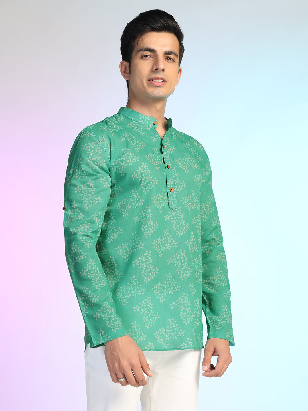 Green Rayon Printed Short Kurta For Men – Elegant & Comfortable Ethnic Fusion Wear
