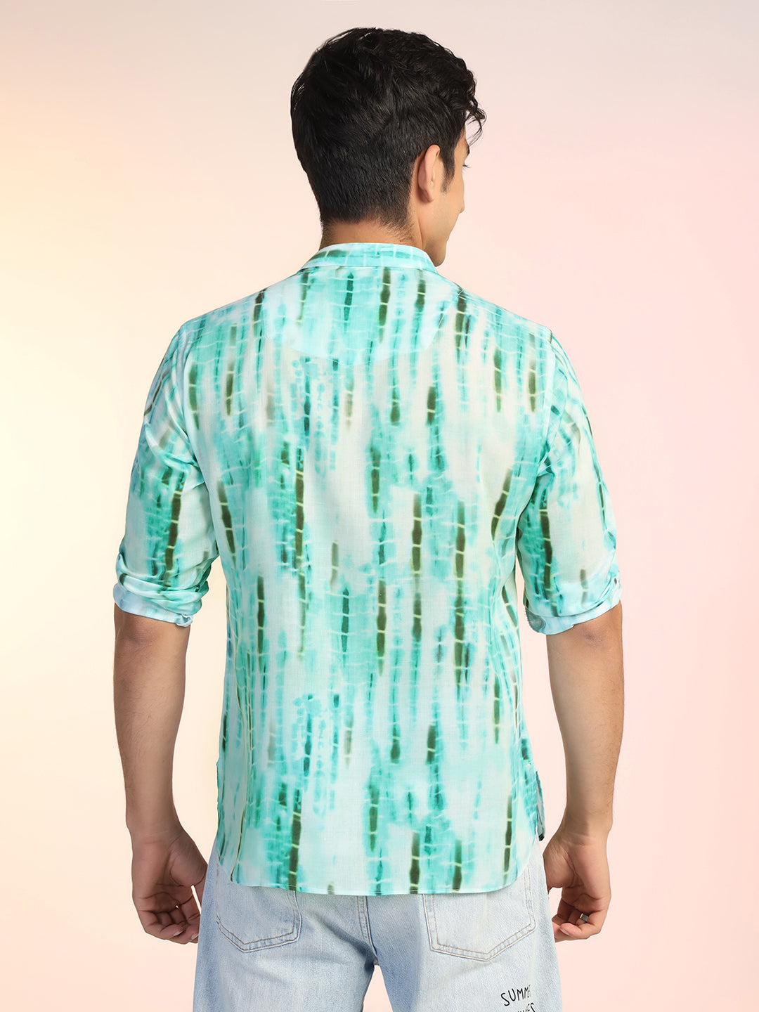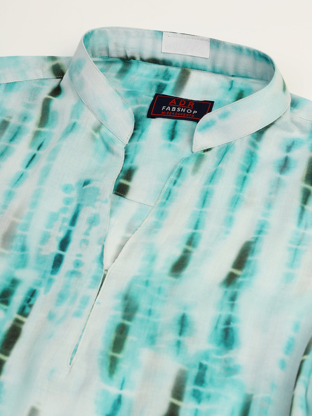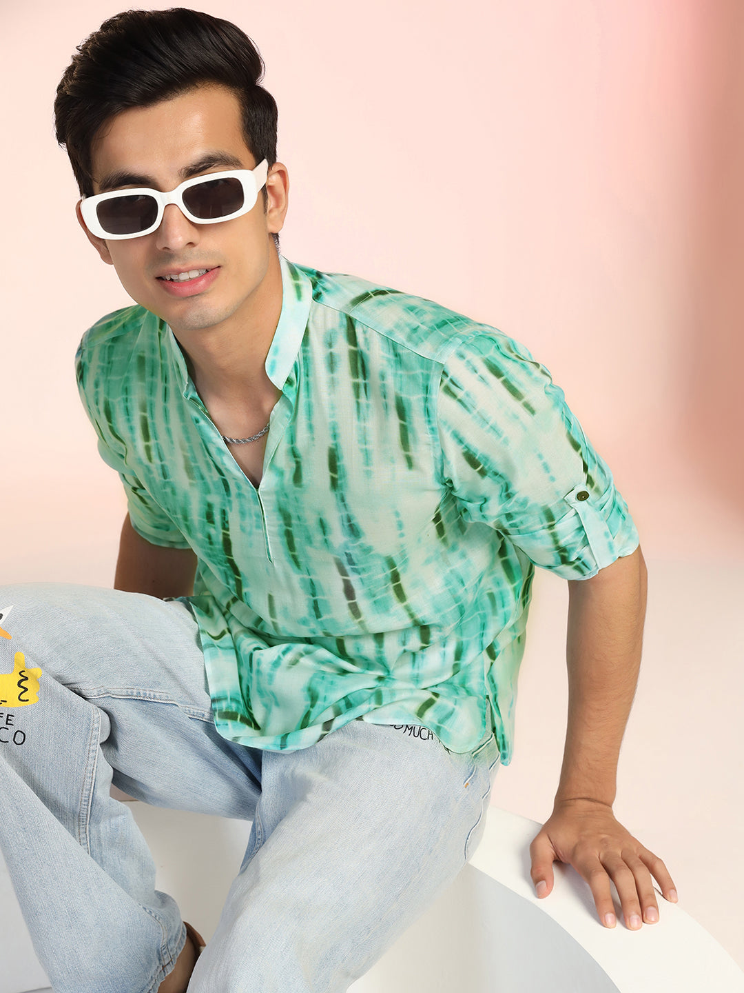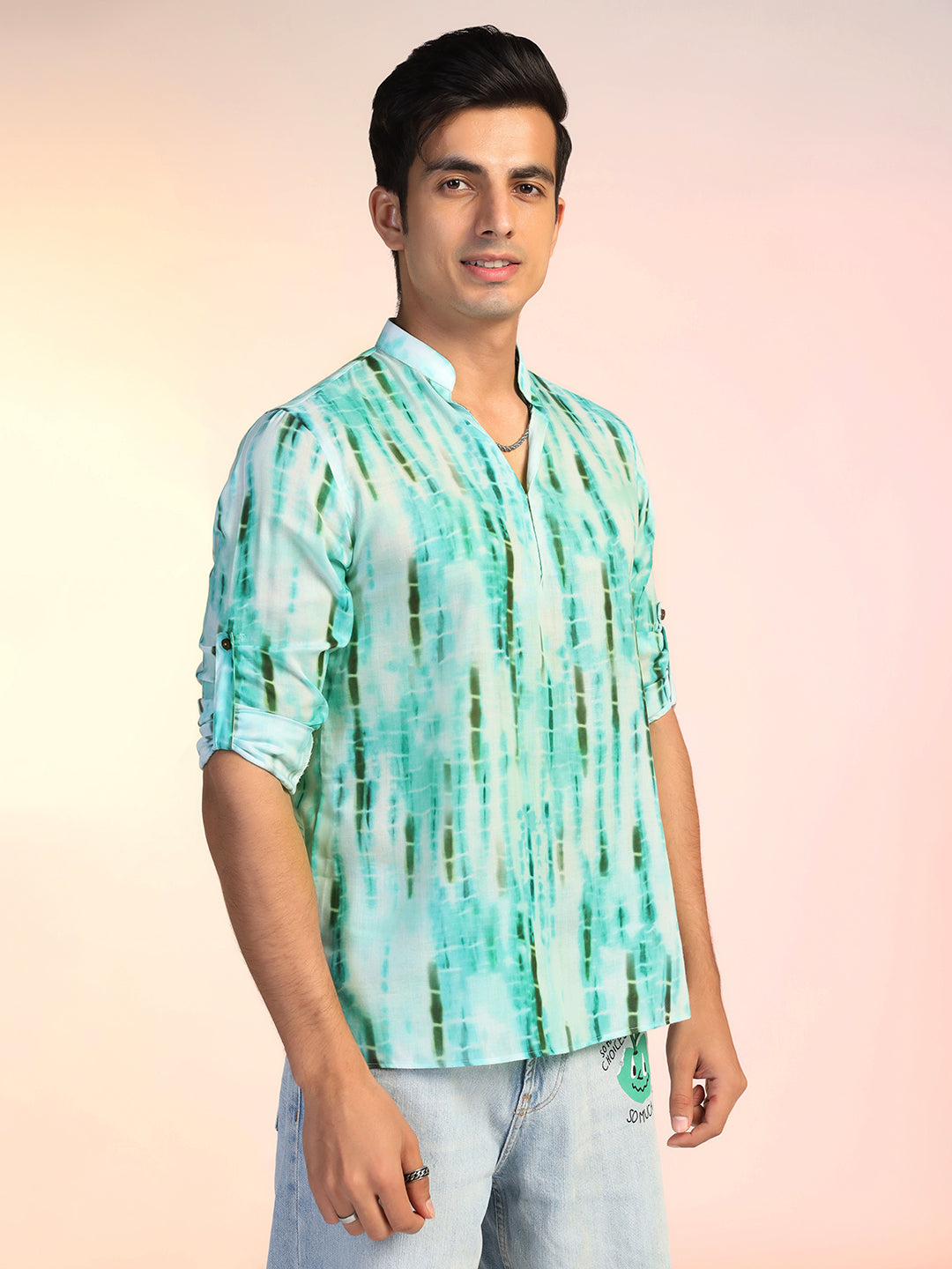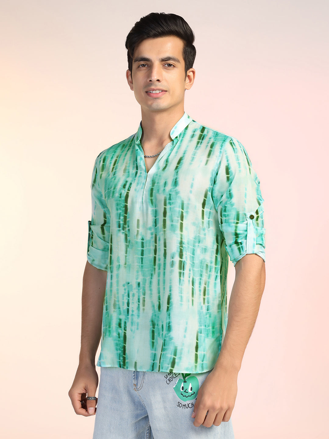 Embrace the fusion of tradition and contemporary fashion with Prakatha’s Green Tie-Dye Short Kurta. Designed with a sleek mandarin collar and roll-up sleeves, this breathable Rayon kurta ensures all-day comfort while keeping you stylish.