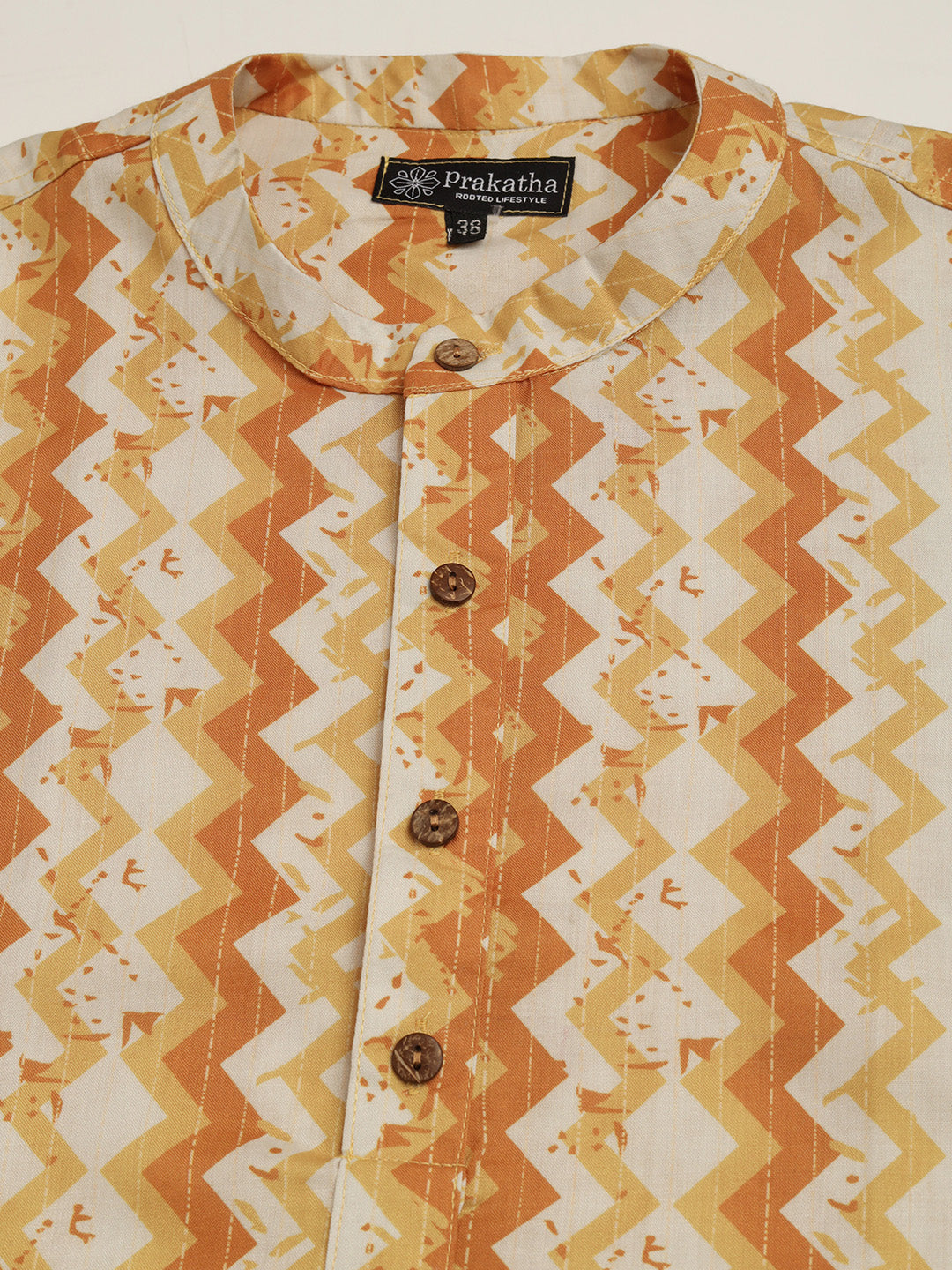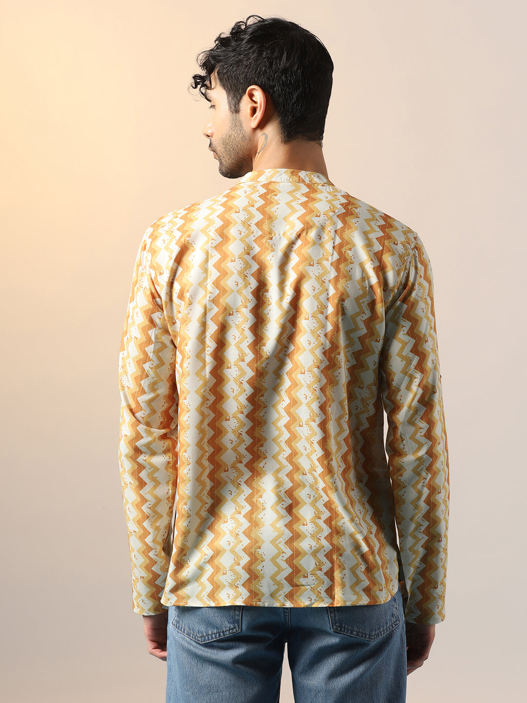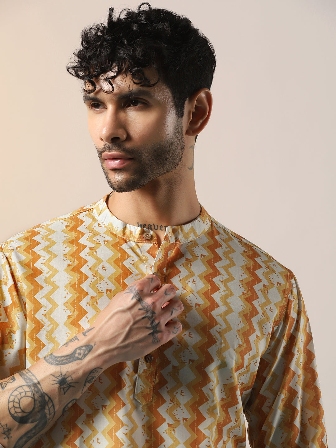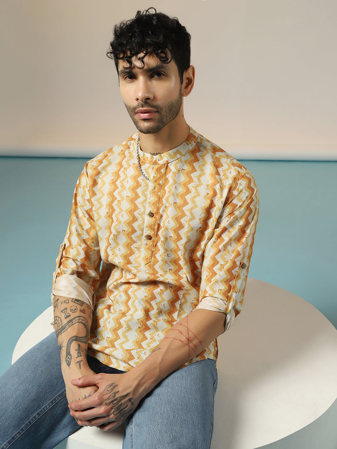 Mustard Zigzag Cotton Blend Short Kurta For Men – Bold & Bright